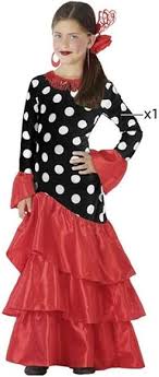 Con su vibrante combinación de rojo y negro, este disfraz captura la esencia de la tradición flamenca. Los detalles cuidadosamente diseñados, como los volantes y el estampado, hacen que cada movimiento sea un espectáculo. Ideal para fiestas, ferias o actuaciones, este disfraz hará que tu pequeña se sienta como una auténtica bailarina.